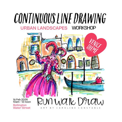 A fun, expressive 2-hour workshop for artists of all abilities - from absolute beginners who 'think they can't draw' to more experienced artists who get bogged down in detail. FEBRUARY 14th SPECIAL Our reference theme for this session will be 'Venice: City of Love'. A perfect creative escape for Valentine's Day. We will be drawing scenes which capture the unique atmosphere of Venice.