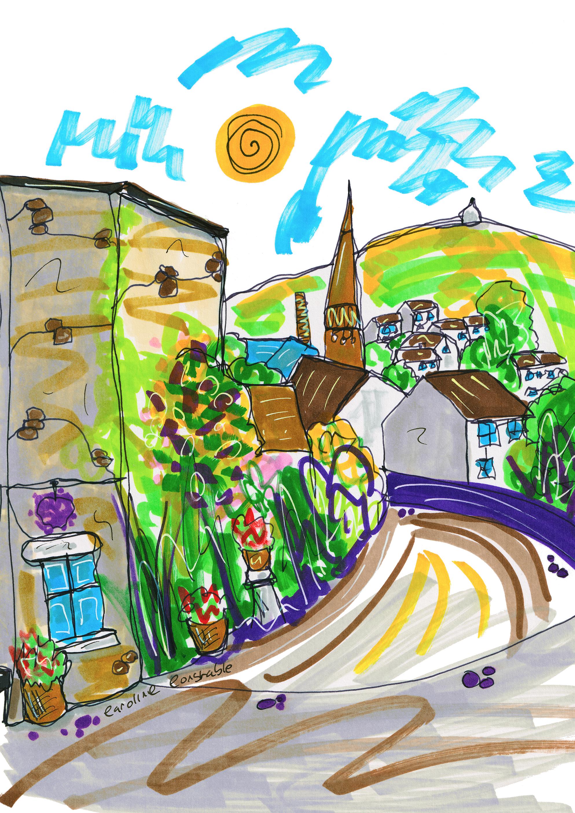 Caroline Constable is an artist and illustrator based in the UK, whose creative process is rooted in movement. Her work is inspired by the rhythm of running and walking and the experience of travelling through places on foot. Often using a continuous line technique, she captures the essence of real locations with simplicity, spontaneity and charm.