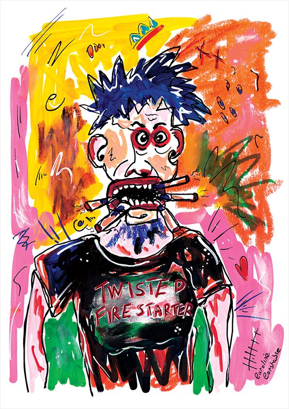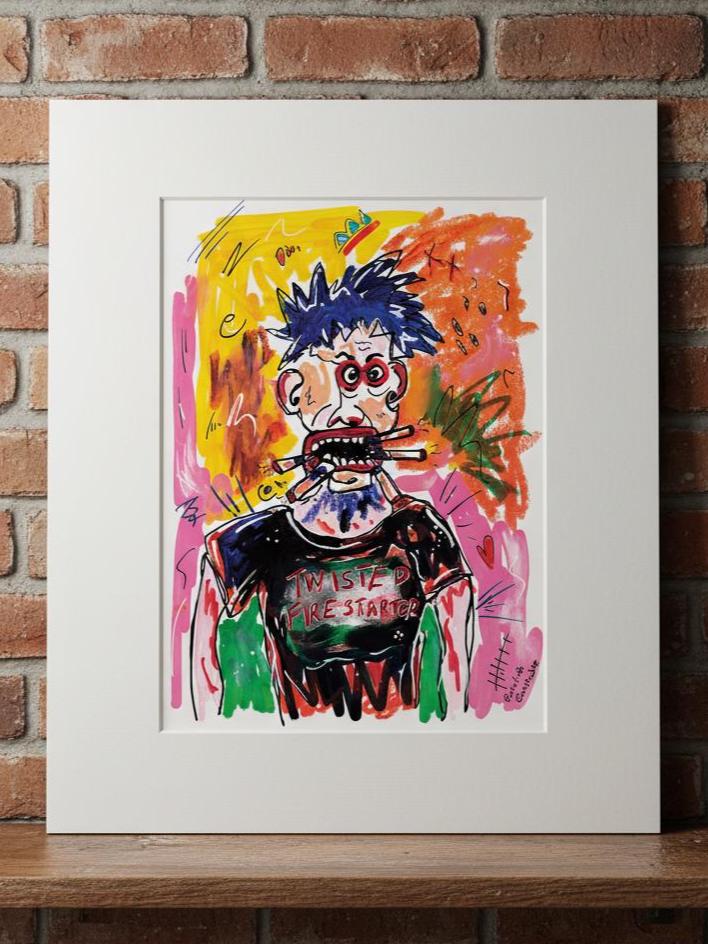 'Twisted Fire Starter' was inspired by a discarded cigarette butt spotted on a walk, this piece became an experiment in neo-expressionism