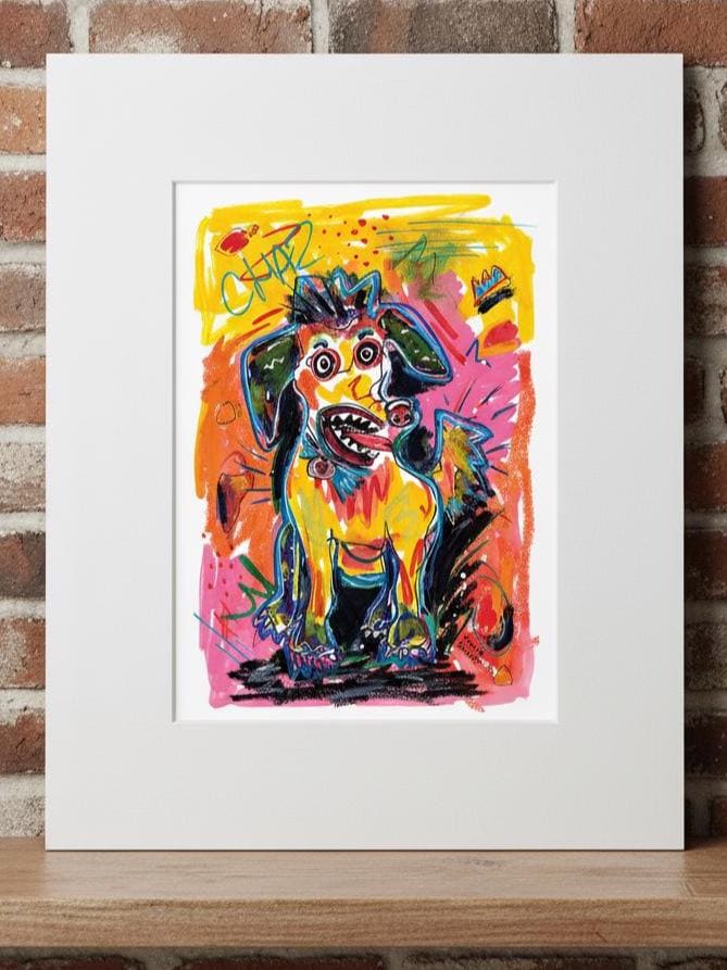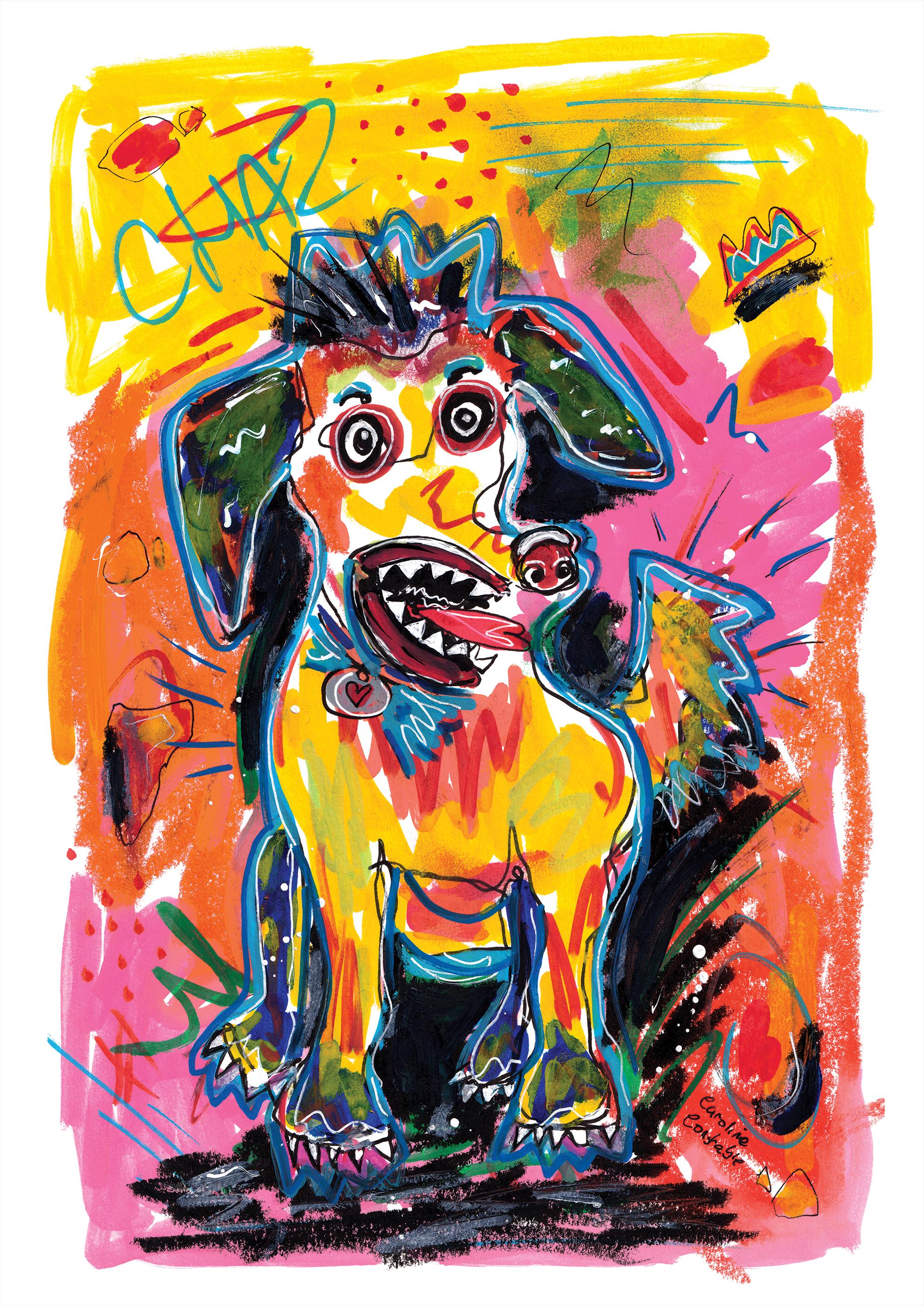Celebrating Caroline’s dog 'Chaz', this piece captures playful, untamed energy through expressive neo-expressionist strokes.