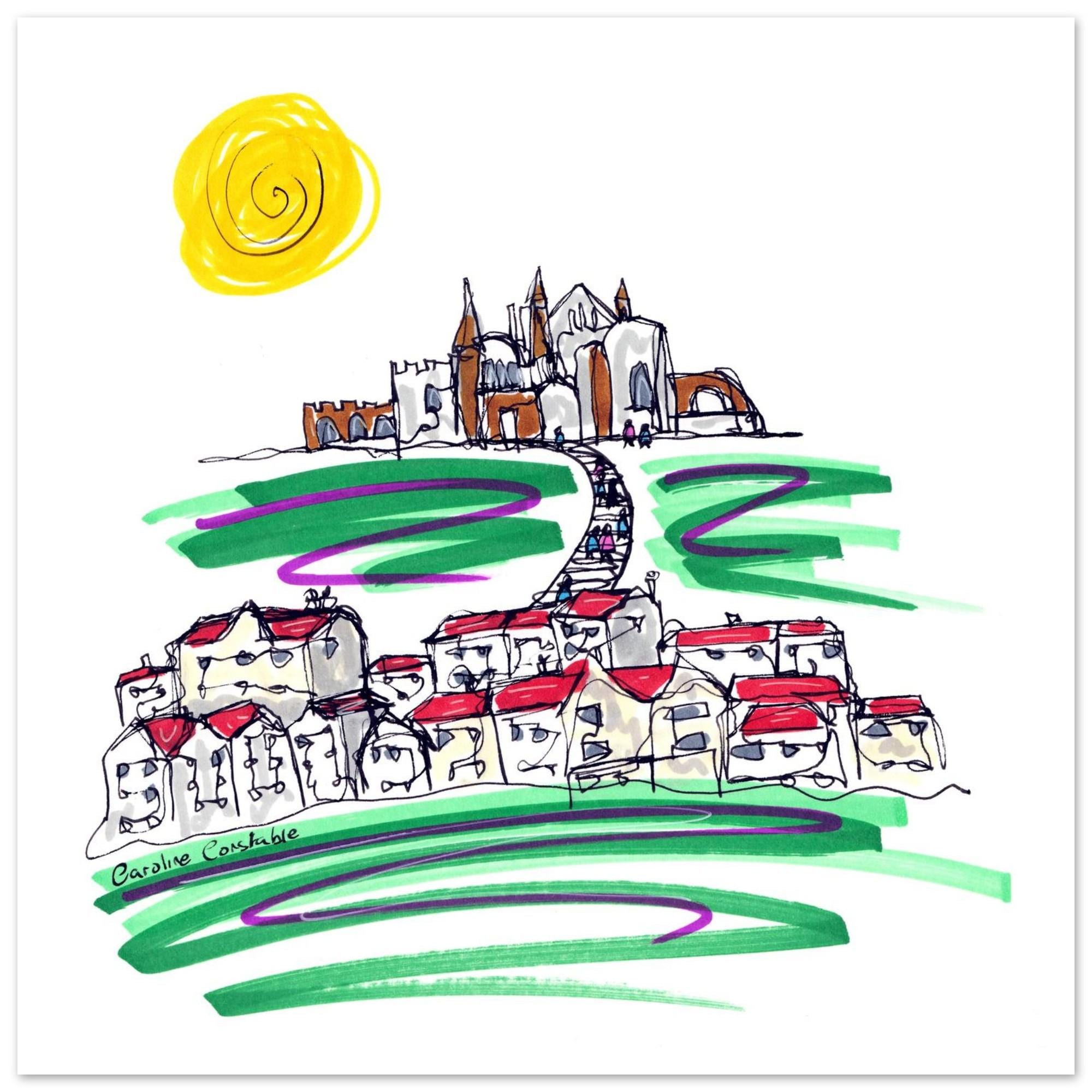 Steps to Whitby Abbey, Yorkshire - a hand-drawn continuous line sketch with marker pen by Caroline Constable.