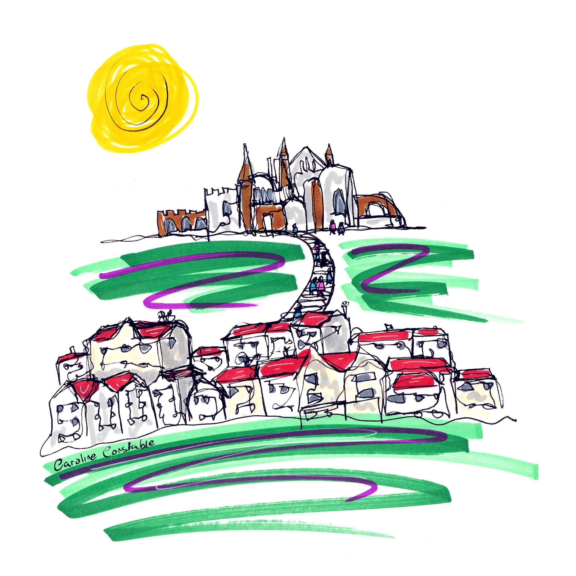 Caroline Constable is an artist and illustrator based in the UK, whose creative process is rooted in movement. Her work is inspired by the rhythm of running and walking and the experience of travelling through places on foot. Often using a continuous line technique, she captures the essence of real locations with simplicity, spontaneity and charm.